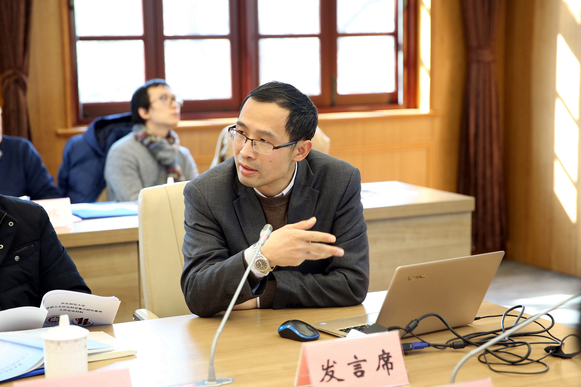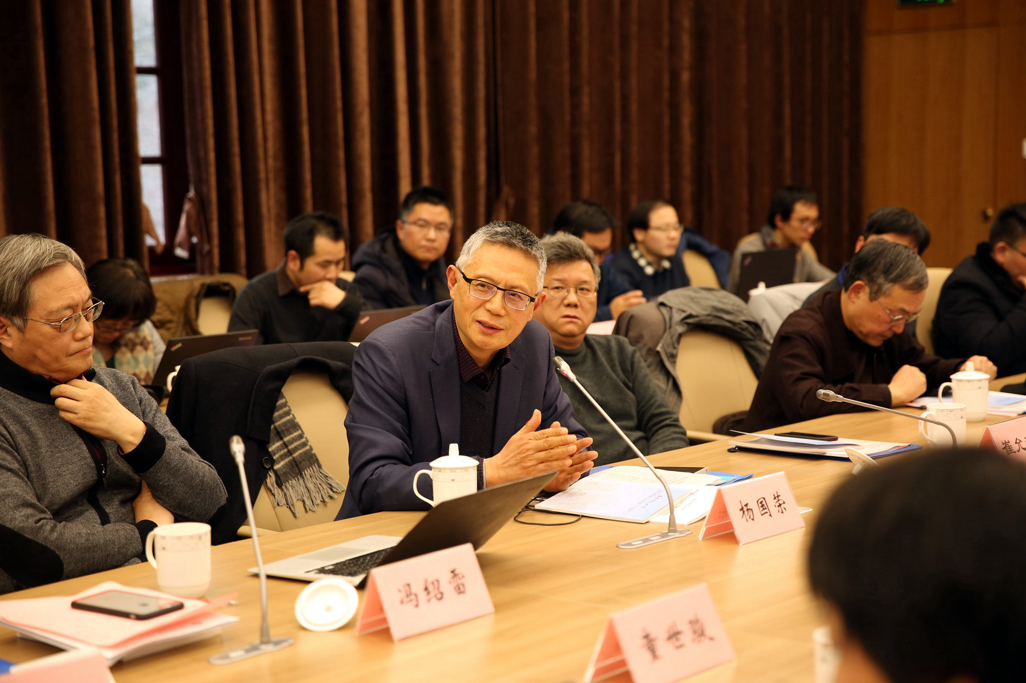 校党委书记童世骏参与会议讨论,并作总结发言。他指出,我校进入“双一流”建设高校A类行列,第四轮学科评估也取得了不错的成绩,文科在其中起到非常重要的作用。本次会议是党的十九大胜利召开、我校成功进入“双一流”建设行列以及第四轮学科评估以后的第一次基地会议,各基地要有更加明确的聚焦方向,要有更高的奋斗目标,学校各职能部门和院系要更好地支持基地建设。未来五年,平台建设将是我校科研发展非常重要的方向,通过平台建设,强调实证研究,强调团队攻关,强调跨学科合作,争取收获更多的成果。